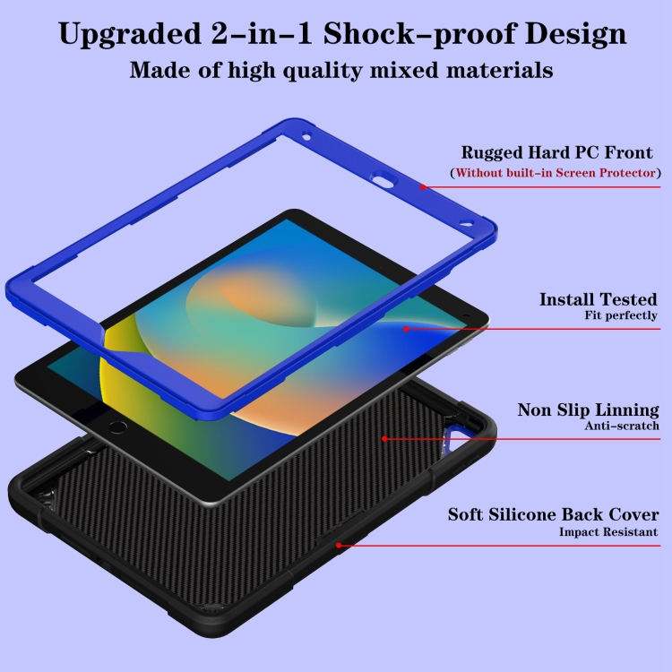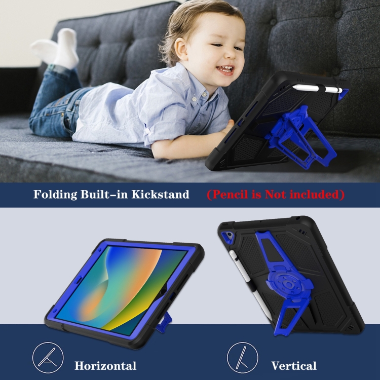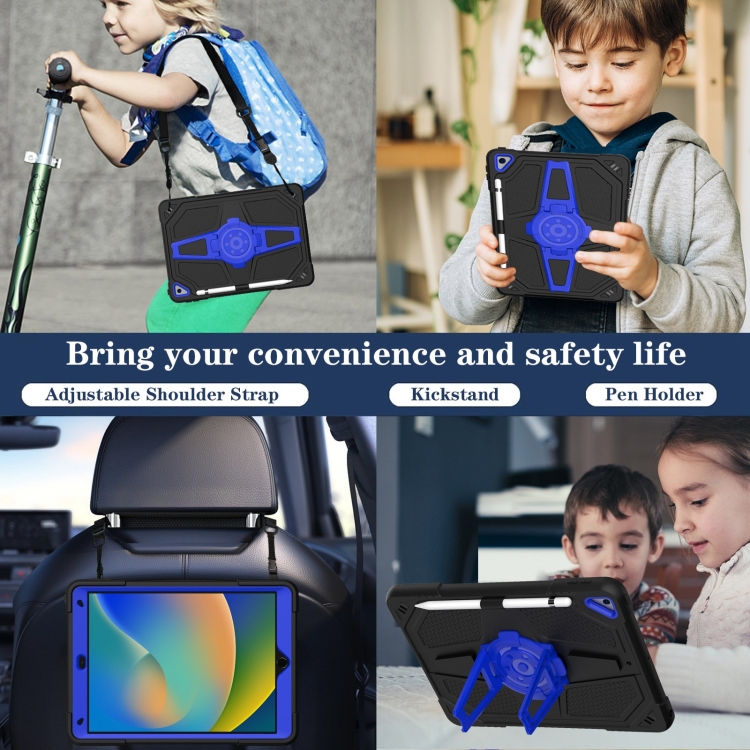 Funda para Tableta iPad 10.2 2021/2020/2019 Silicona Híbrida Soporte Punk Correa (Negro Azul)