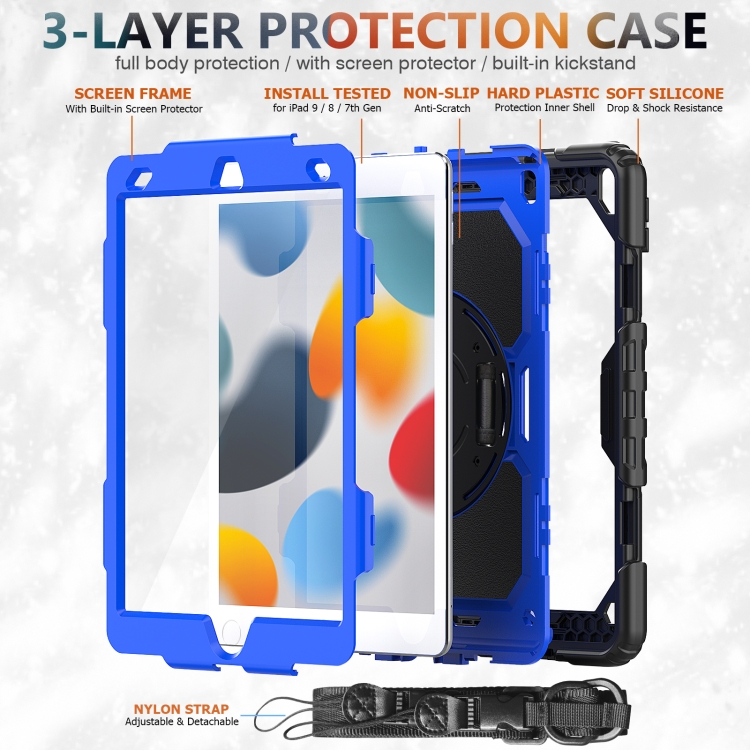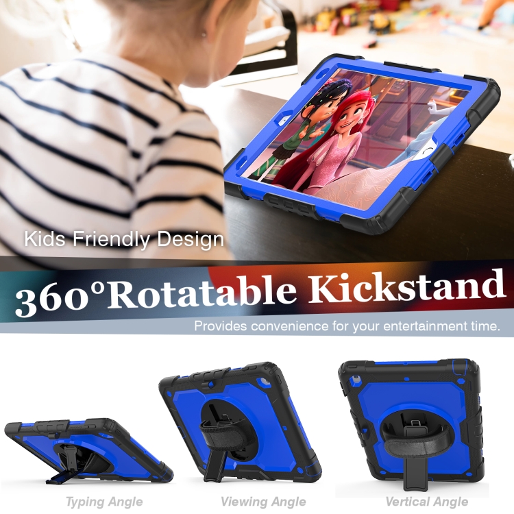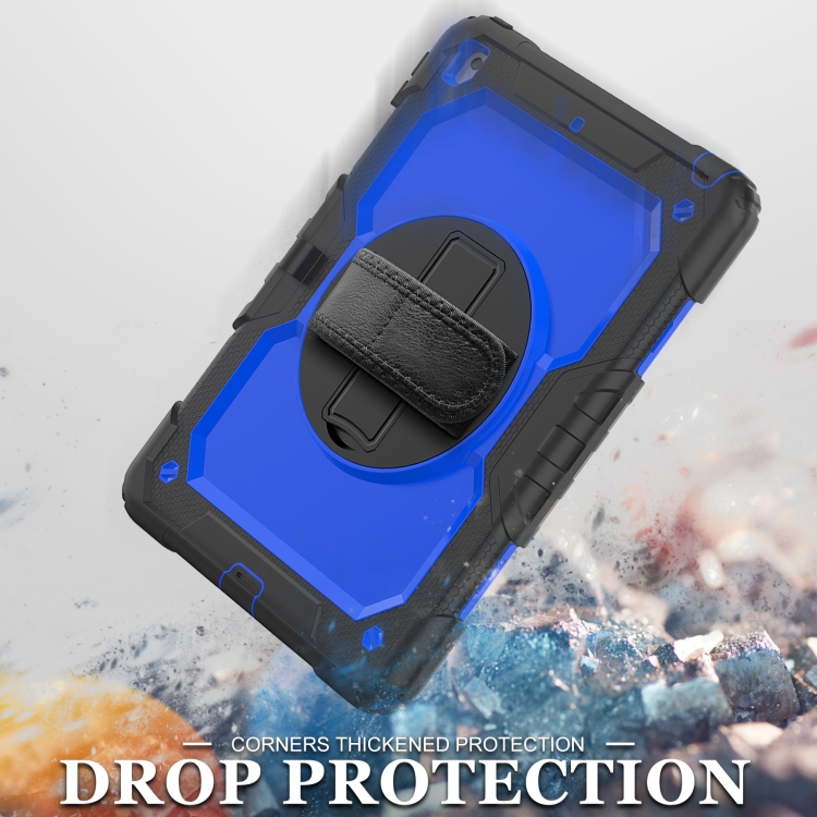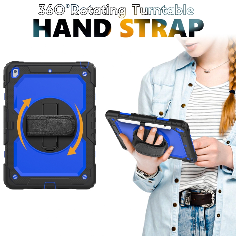 Funda Protectora para iPad 10.2 2021 / 2020 / 2019 Silicona + PC con Soporte Correa y Ranura para Bolígrafo (Negro + Azul)