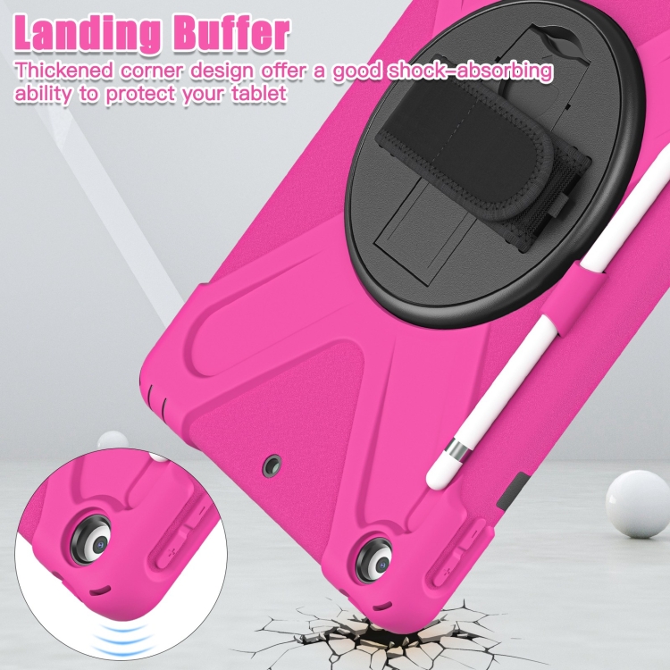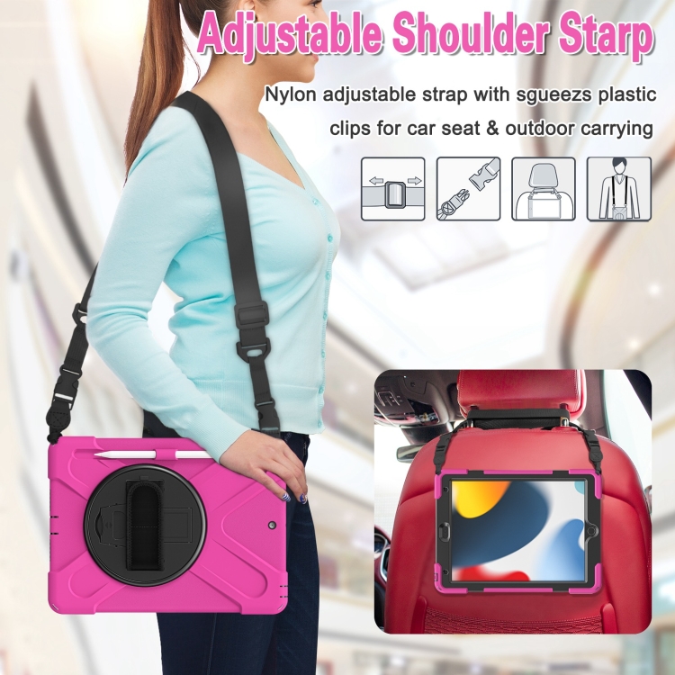 Funda Protectora para iPad 10.2 2021 / 2020 / 2019 Silicona + PC con Soporte y Correa (Rosa Roja)