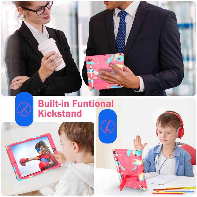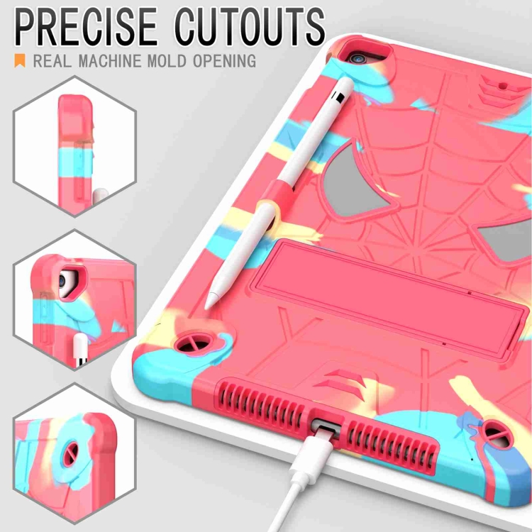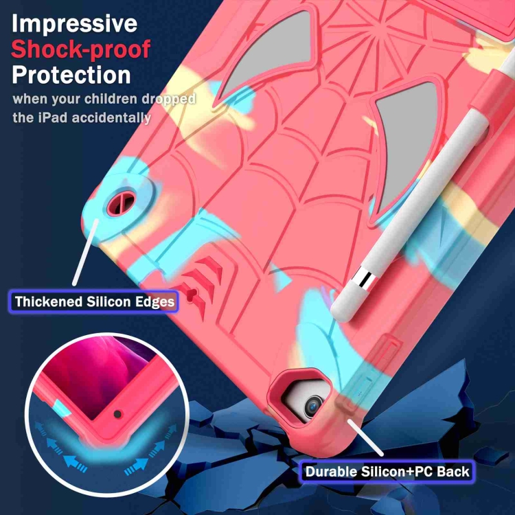Funda para iPad 10.2 Spider Texture Silicone Hybrid PC con Correa para El Hombro (Camuflaje + Rosa Roja)