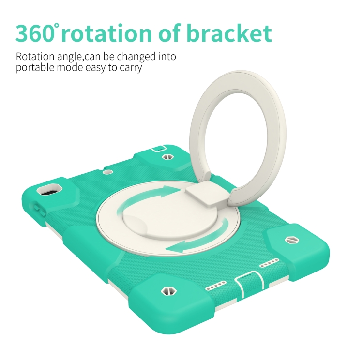 Funda para iPad 9.7 2018 Silicone + PC Protección Cuerpo Completo con Soporte y Correa (Menta Verde)