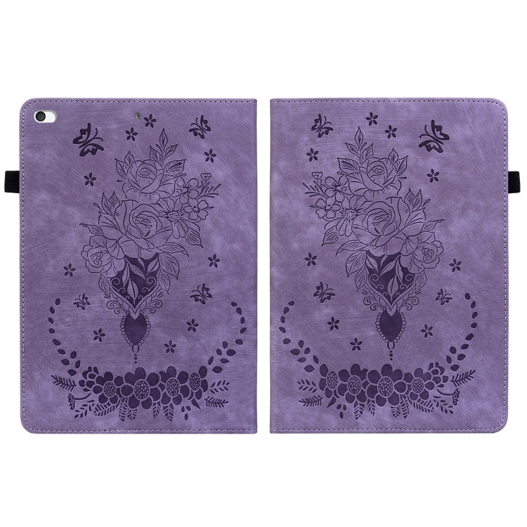Estuche para Tableta iPad Mini 5 / 4 / 3 / 2 / 1 Cuero En Relieve Butterfly Rose (Púrpura)