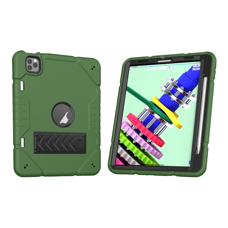 Funda para Tableta iPad Pro 11 2022/2021/2020 Híbrida Silicona Soporte Armadura (Verde Militar y Negro)