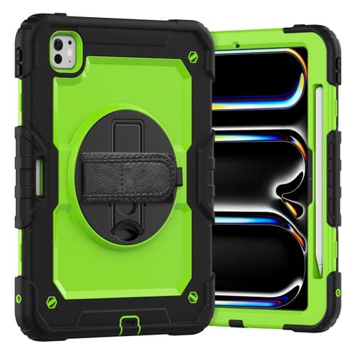 Funda híbrida de silicona para iPad Pro 11 (2024) con correa para el hombro (Amarillo, Verde y Negro)