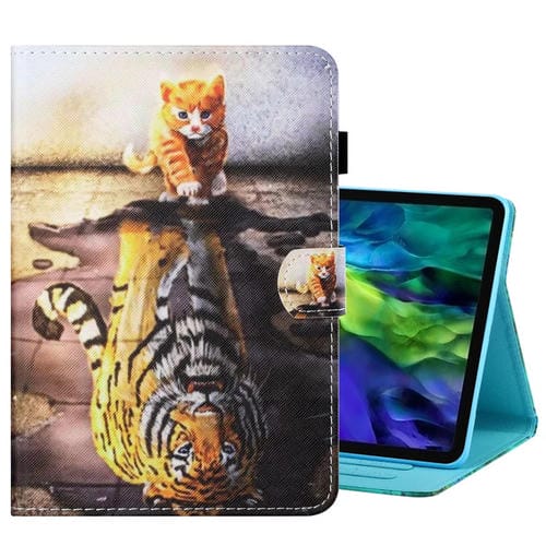 Funda inteligente de cuero para iPad Pro 11 (2024) con dibujos y costuras a color (Gato y Tigre)