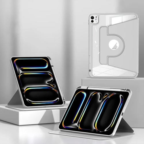 Funda Inteligente Cuero Dividido Magnético para iPad Pro 11 (2024) con Ranura para Bolígrafo (Gris)