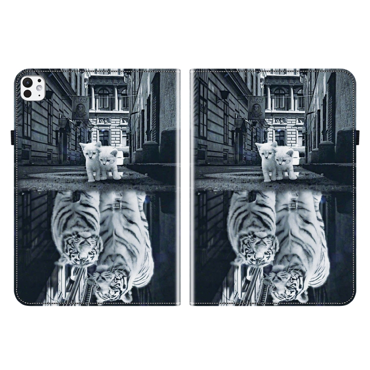 Funda Inteligente Cuero Pintado iPad Pro 11 (2024) Textura Cristal (Reflejo Gato y Tigre)