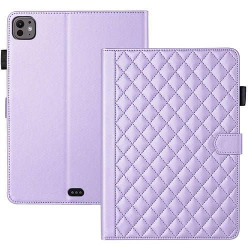 Funda Inteligente de Cuero para iPad Pro 11 (2024) con Diseño de Rombos y Celosía (Morado)