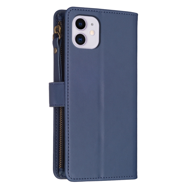 Funda Cartera para iPhone 11 9 Ranuras para Tarjetas Cremallera Cuero con Tapa (Azul)