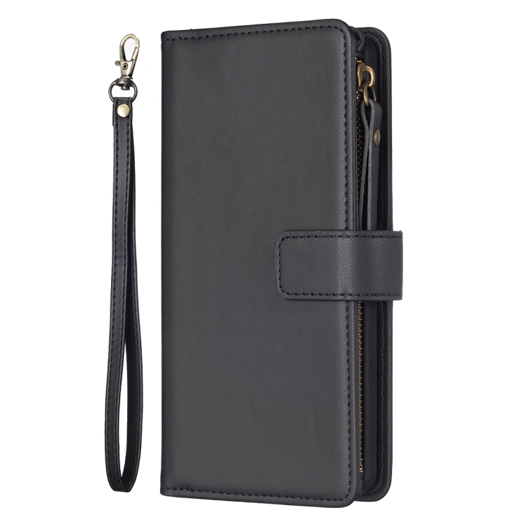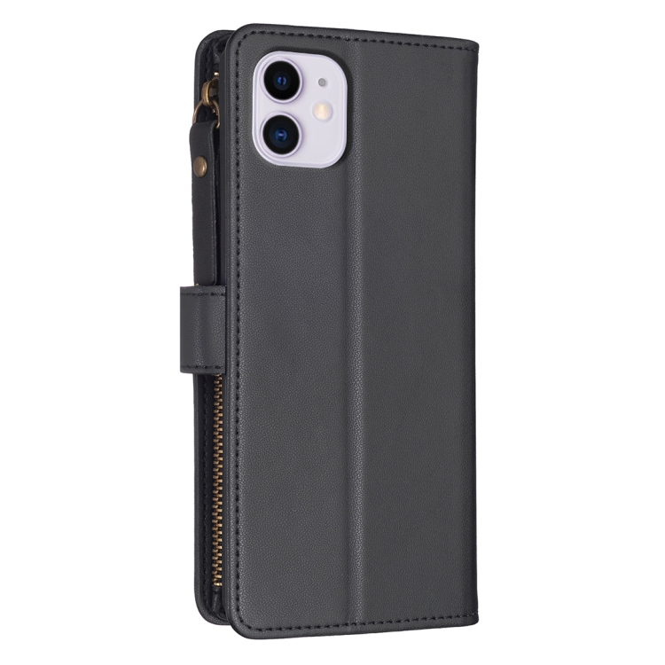 Funda Cartera iPhone 11 9 Ranuras para Tarjetas Cremallera Cuero con Tapa (Negro)