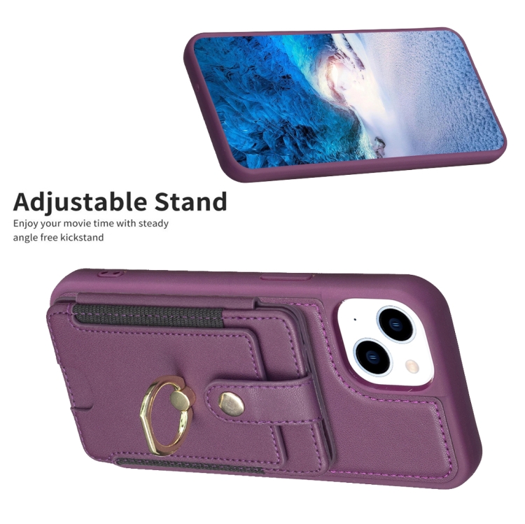 Funda para Teléfono Bf27 para iPhone 11 con Soporte para Tarjeta y Anillo de Metal (Púrpura Oscuro)