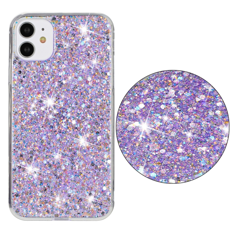 Funda para iPhone 11 TPU con Polvo de Brillo y Marco Transparente (Púrpura)