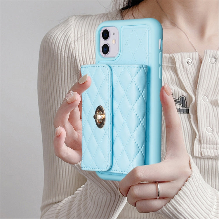 Funda Cartera para iPhone 11 con Hebilla de Metal Horizontal Estuche de Cuero Rómbico (Azul)