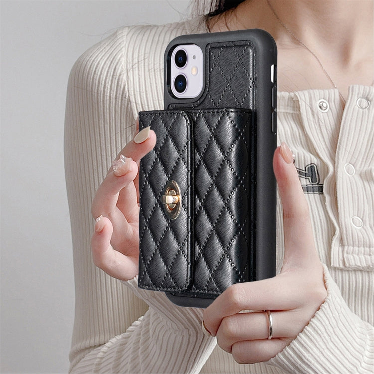 Funda Cartera iPhone 11 con Hebilla de Metal Horizontal Estuche de Cuero Rómbico (Negro)