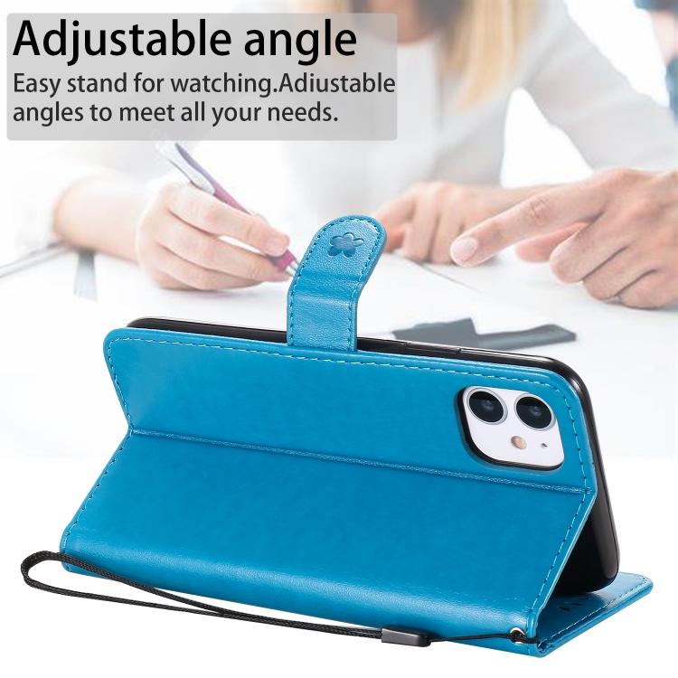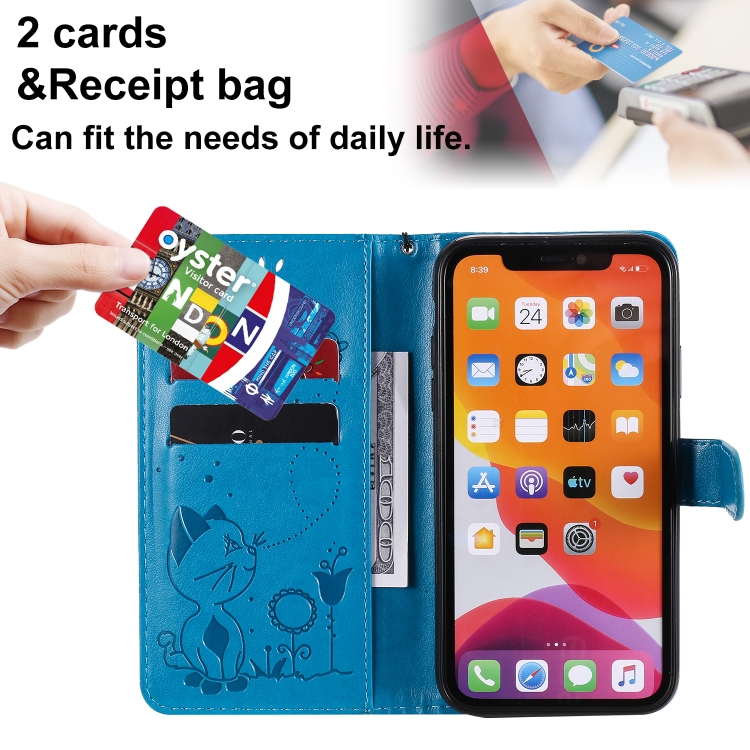 Funda de Cuero Cat Bee para iPhone 11 con Tapa Horizontal, Soporte, Ranuras para Tarjetas y Billetera (Azul)