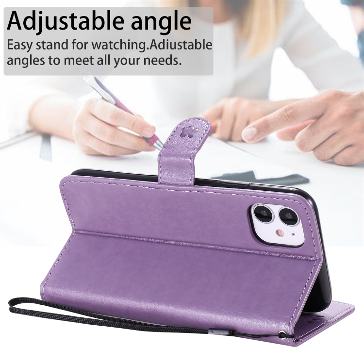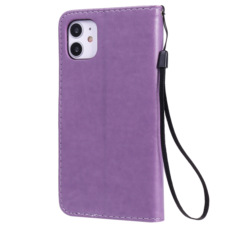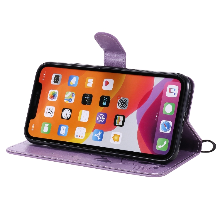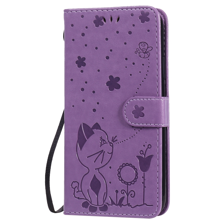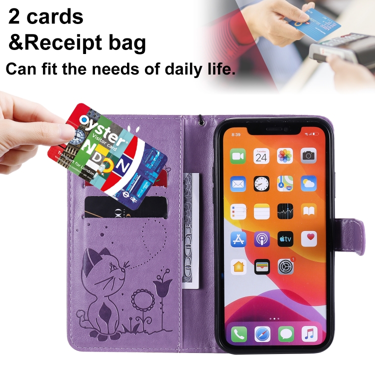 Funda de Cuero iPhone 11 Cat Bee Patrón En Relieve Tapa Horizontal Soporte Ranuras para Tarjetas Billetera (Púrpura)