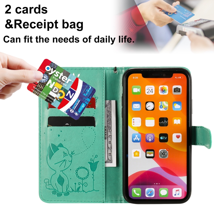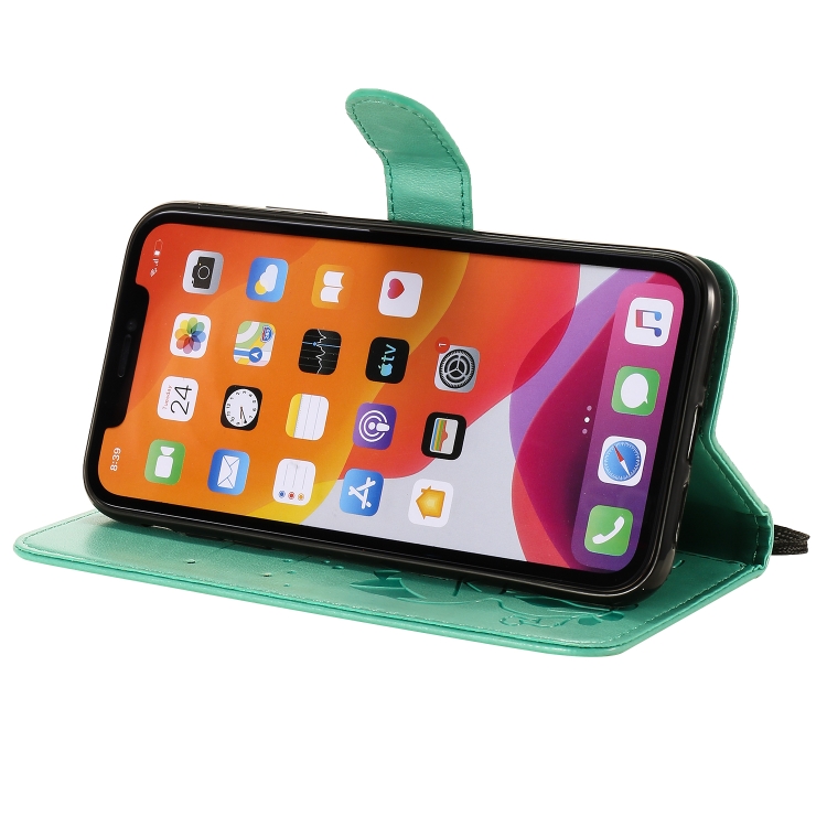 Funda de Cuero Cat Bee para iPhone 11 con Tapa Horizontal, Soporte, Ranuras para Tarjetas y Billetera (Verde)