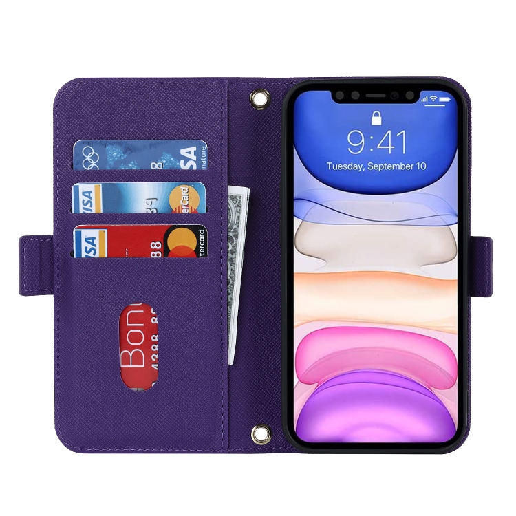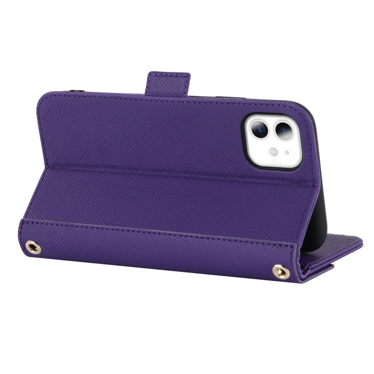 Funda para iPhone 11 Cross Texture Lanyard Leather Phone Case (Púrpura)