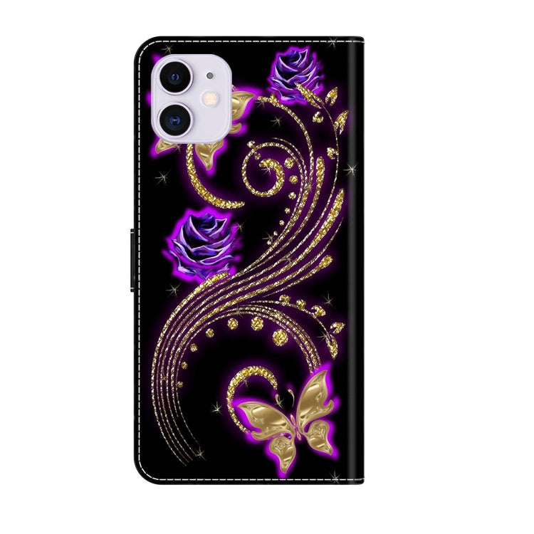 Funda Protectora de Cuero para iPhone 11 Crystal 3D a Prueba de Golpes (Mariposa de Flor Púrpura)