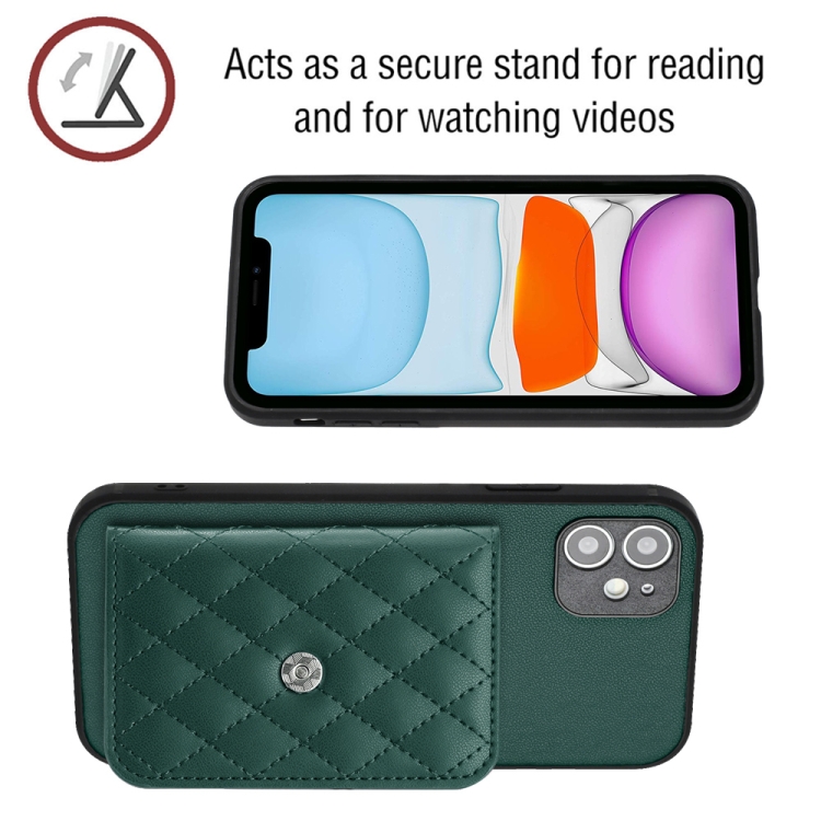 Estuche para Teléfono iPhone 11 Rfid con Bolsa para Tarjetas Textura Rómbica y Cordón Largo (Verde)