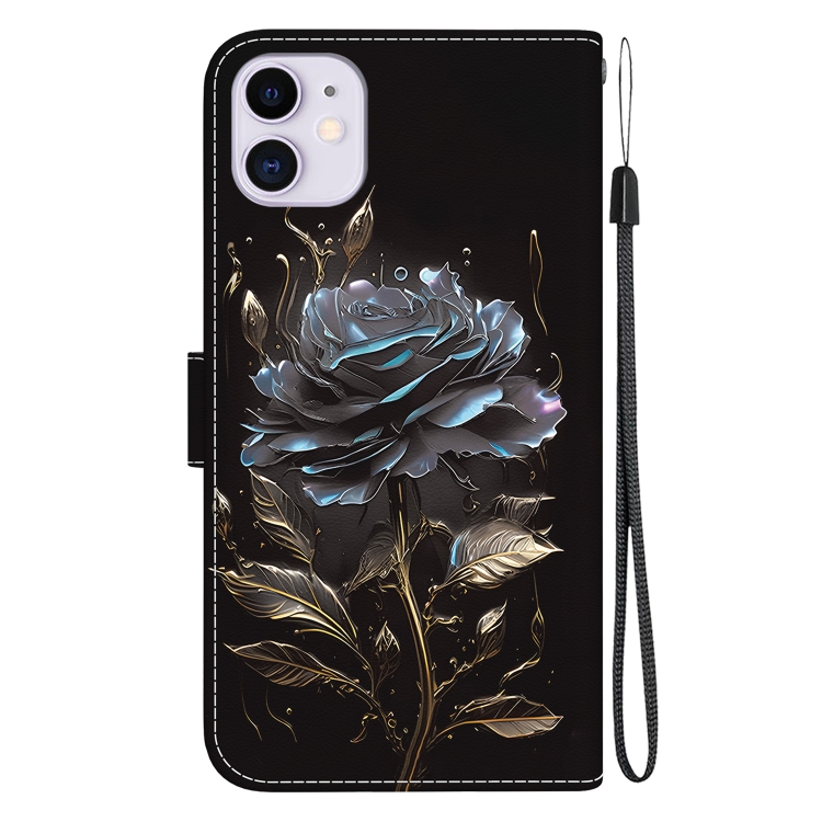 Funda de Cuero para iPhone 11 con Dibujo Coloreado y Textura de Cristal (Rosa Negra)