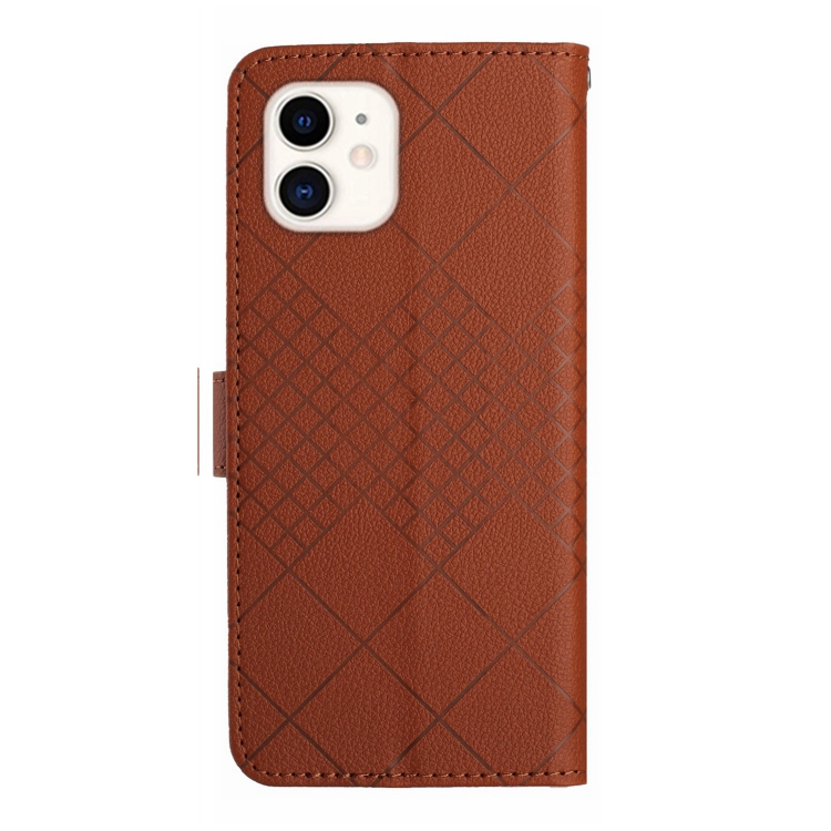 Funda para iPhone 11 Cuero Textura de Rejilla Rómbica (Marrón)