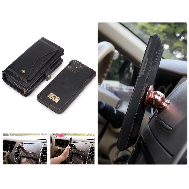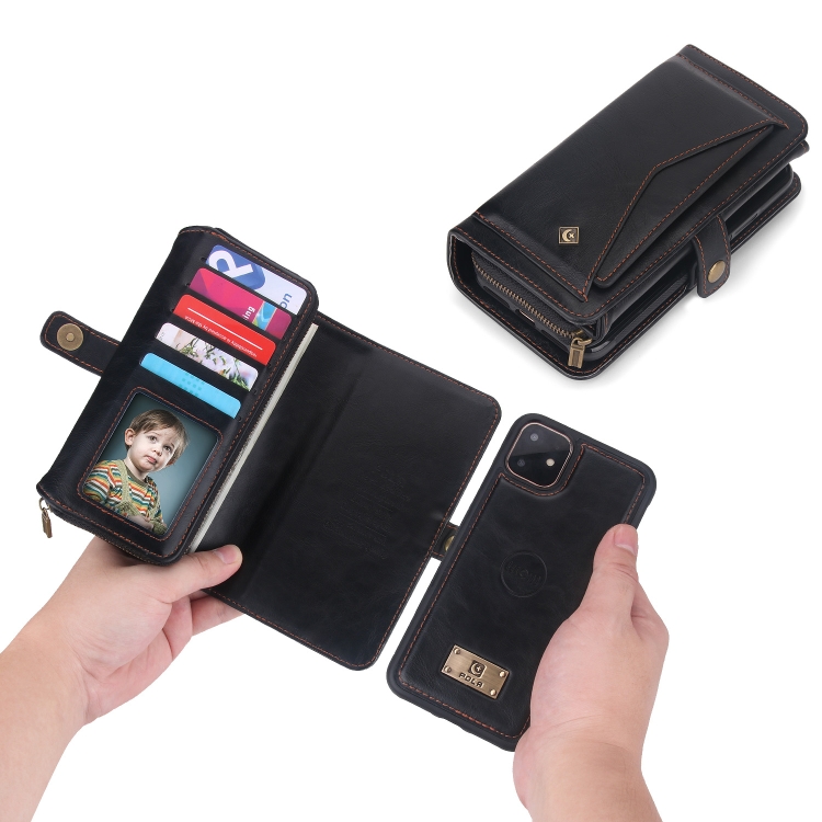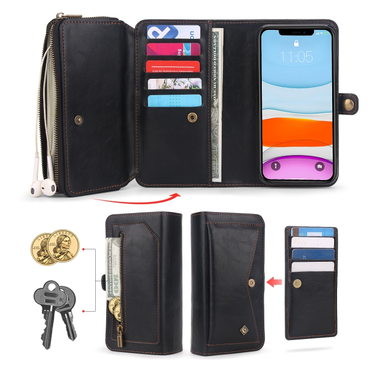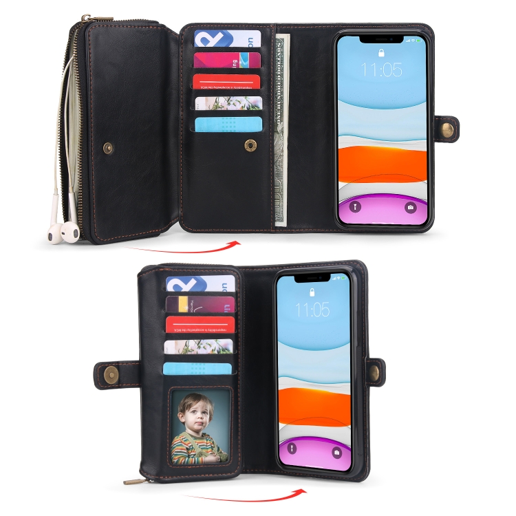 Funda para Teléfono iPhone 11 Cuero con Billetera y Cremallera Multifuncional (Negro)