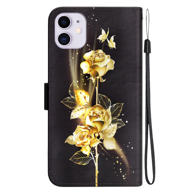Funda de Cuero para Teléfono iPhone 11 con Dibujo Coloreado y Textura de Cristal (Mariposa Dorada Rosa)