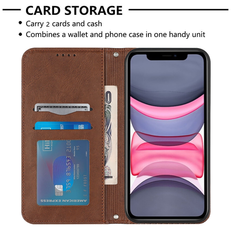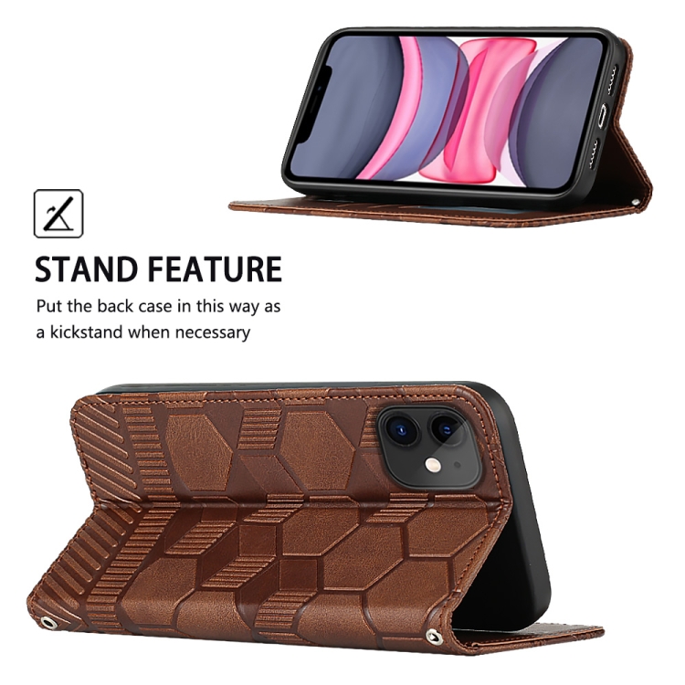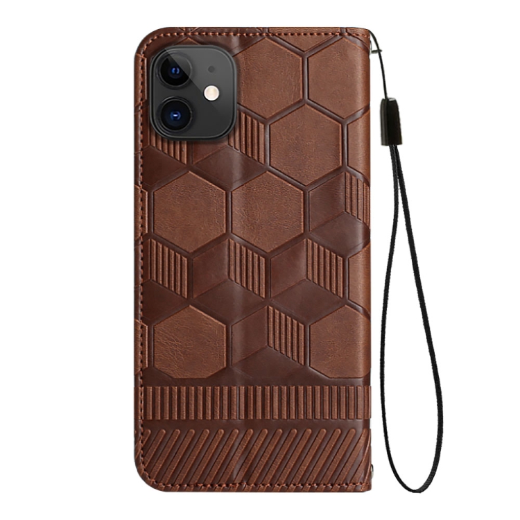 Funda de Teléfono iPhone 11 con Tapa de Cuero Magnético Textura de Fútbol (Marrón)