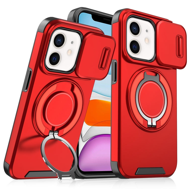 Funda para Teléfono iPhone 11 Soporte Anillo Leva Deslizante (Rojo)