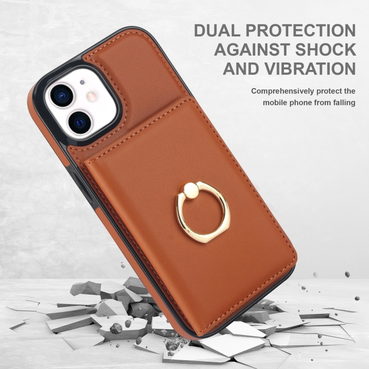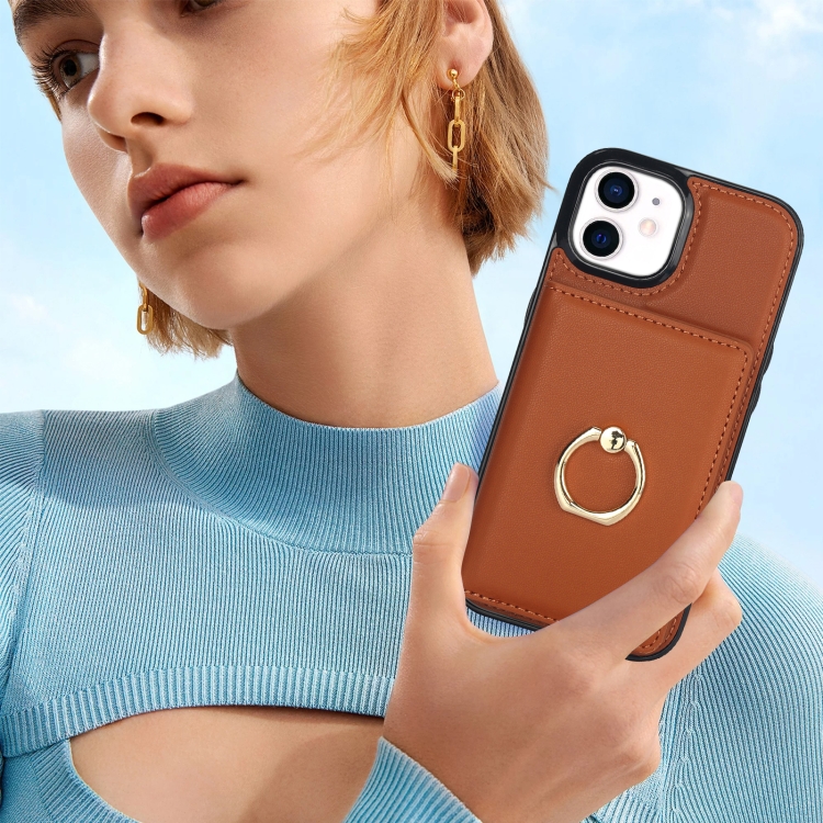 Funda para Teléfono iPhone 11 con Soporte para Anillo y Tarjeta Antirrobo Rfid (Marrón)