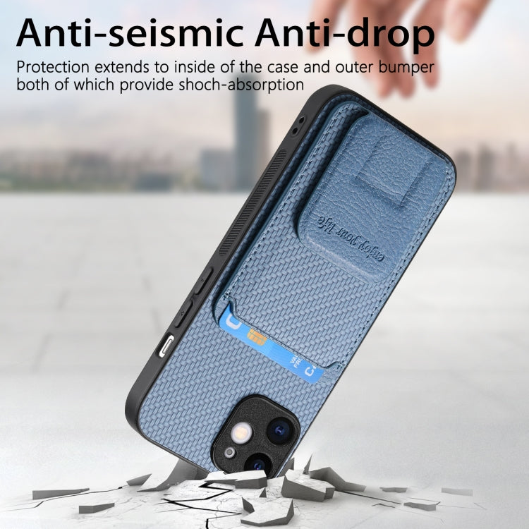 Funda para Teléfono iPhone 11 con Soporte Plegable y Bolsa para Tarjetas Fibra de Carbono (Azul)
