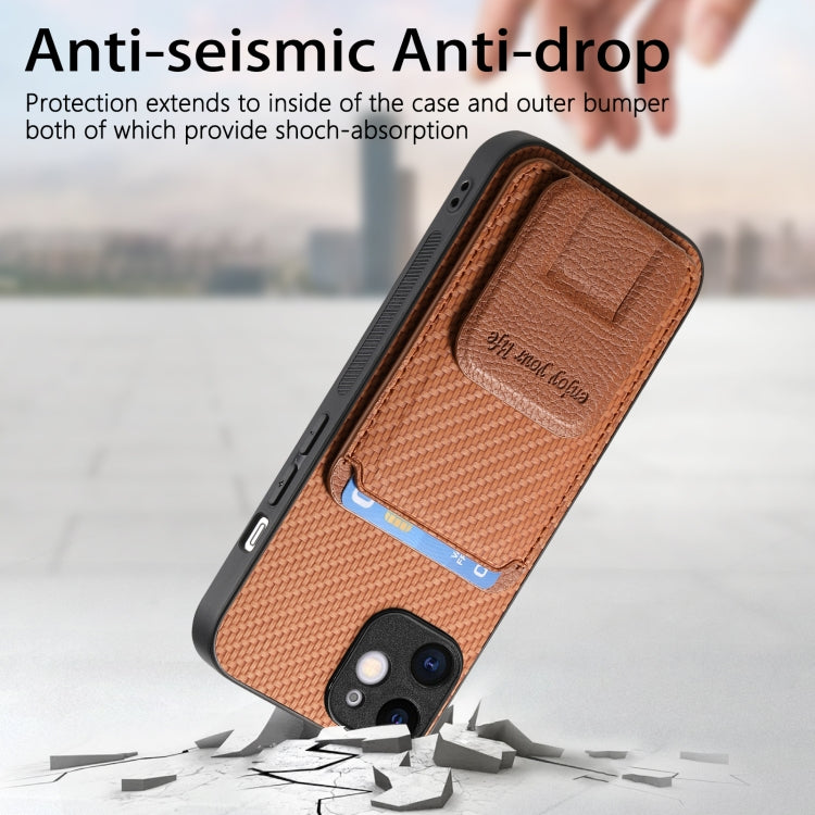 Funda para Teléfono iPhone 11 con Soporte Plegable y Bolsa para Tarjetas Fibra de Carbono (Marrón)