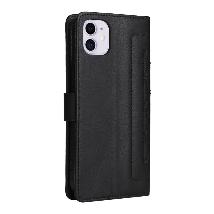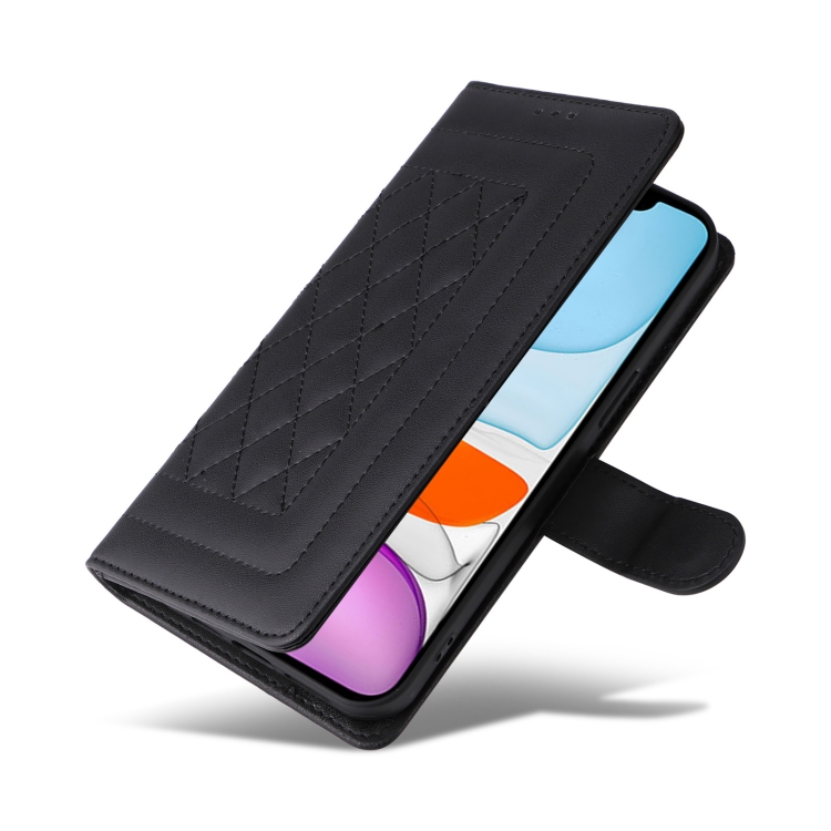 Funda para Teléfono iPhone 11 con Tapa de Cuero Diamond Lattice (Negro)
