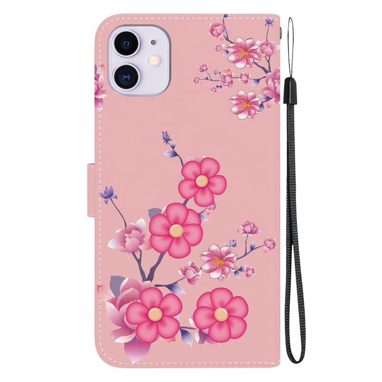 Funda para Teléfono iPhone 11 Cuero con Dibujo Coloreado y Textura de Cristal (Flores de Cerezo)