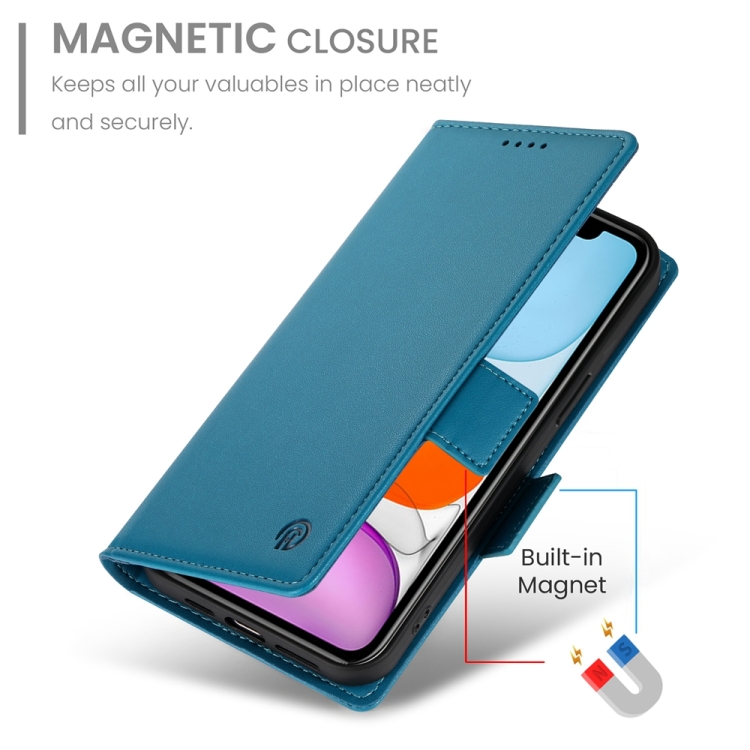 Funda para Teléfono iPhone 11 Cuero Esmerilado Magnético con Hebilla Lateral (Azul)