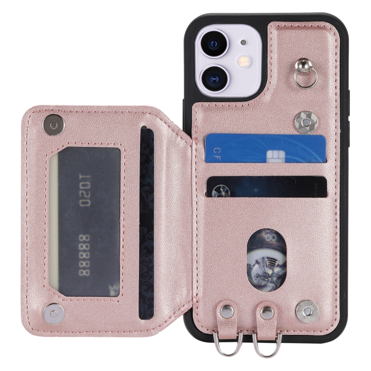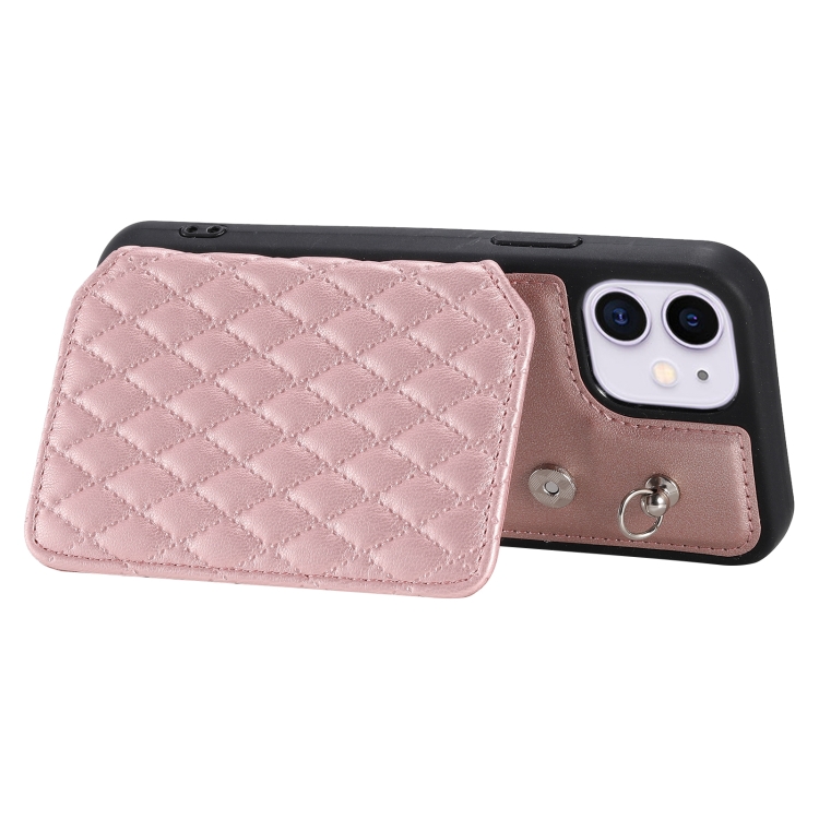 Funda para Teléfono iPhone 11 Grid Texture Card Bag con Cordón (Oro Rosa)