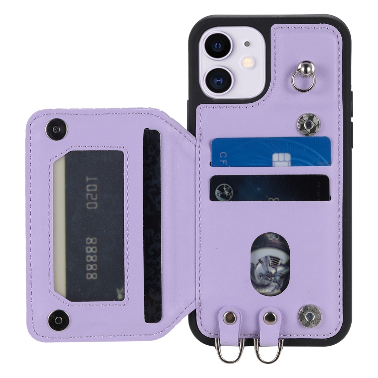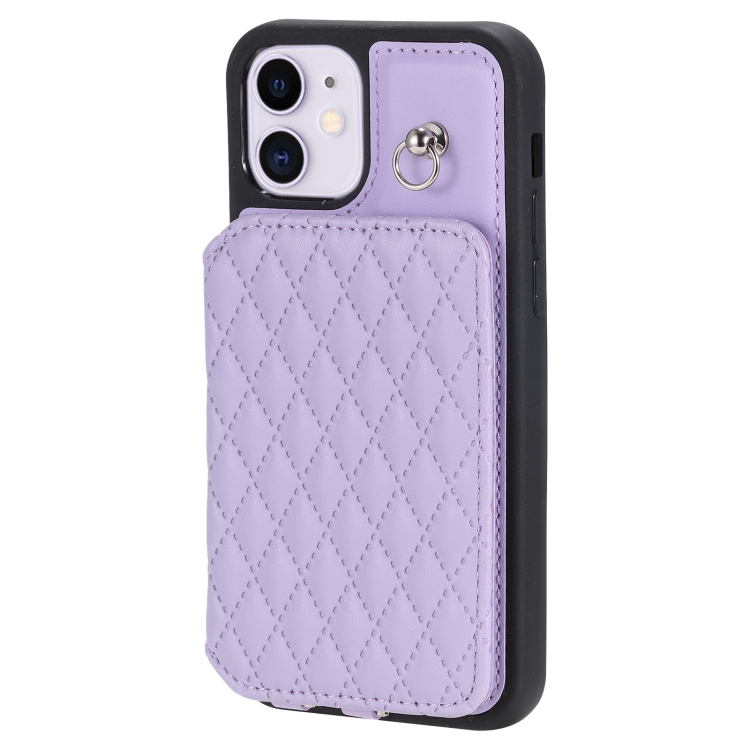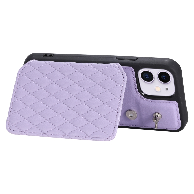 Funda para Teléfono iPhone 11 Grid Texture Card Bag con Cordón (Púrpura)