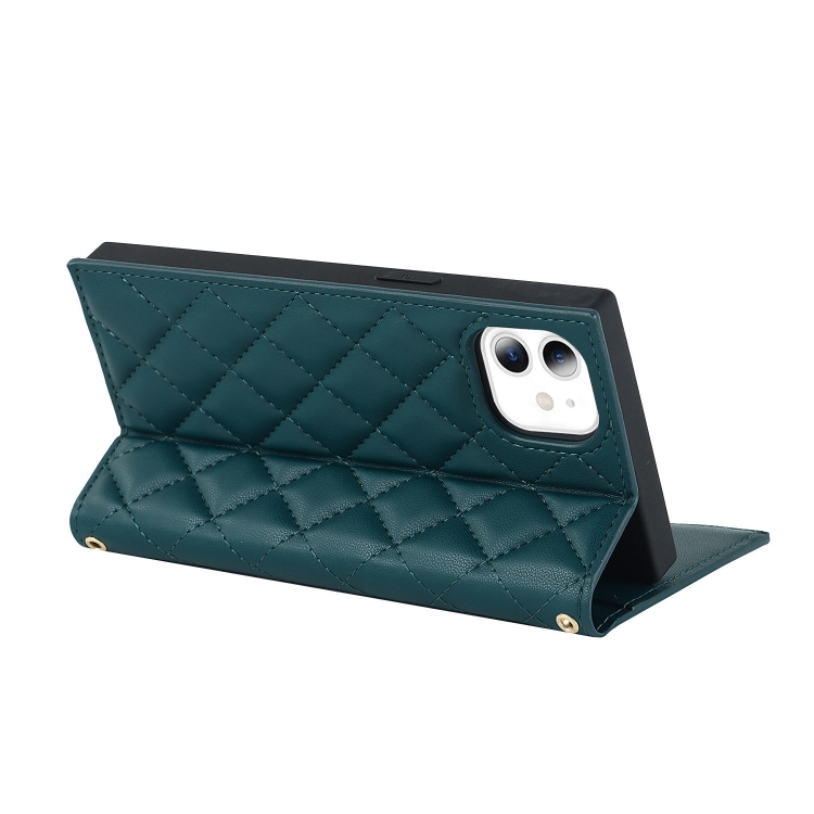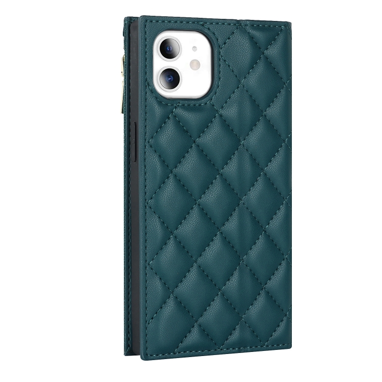 Funda de Cuero con Cremallera para iPhone 11 Grid Texture Lanyard (Verde)