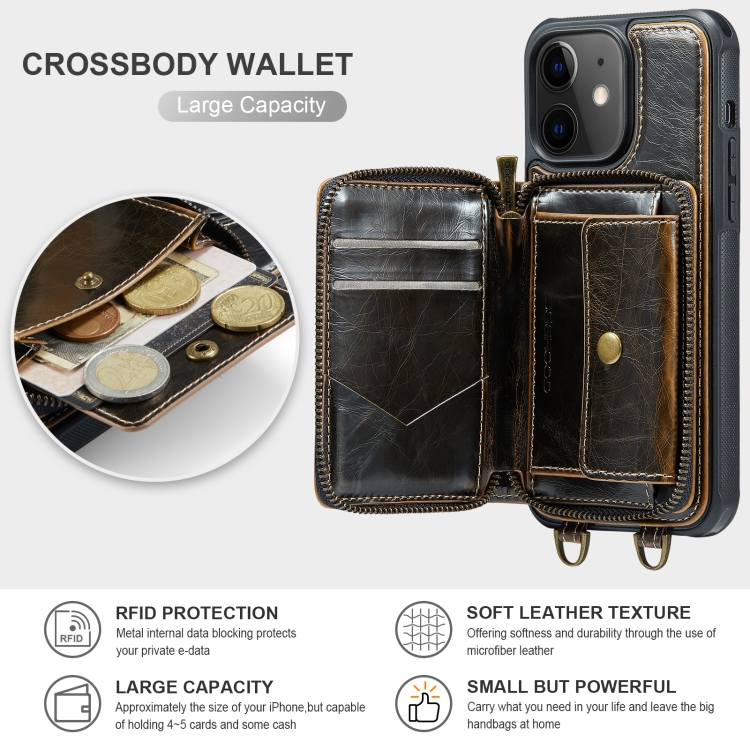 Funda para iPhone 11 Jeehood C22 Series Cuero con Cremallera y Doble Cordón (Café)