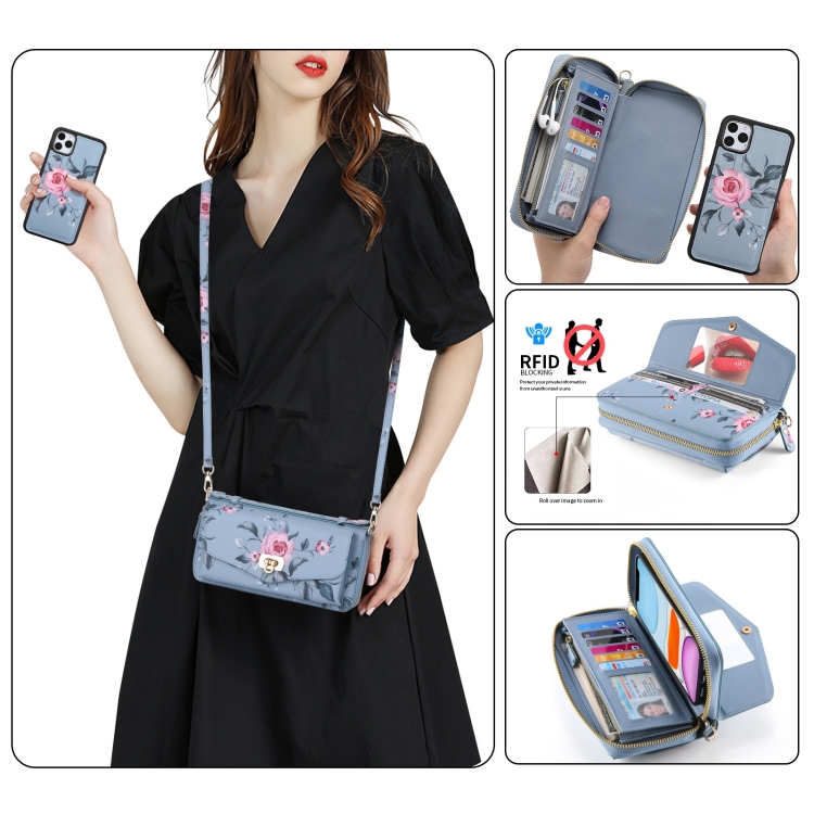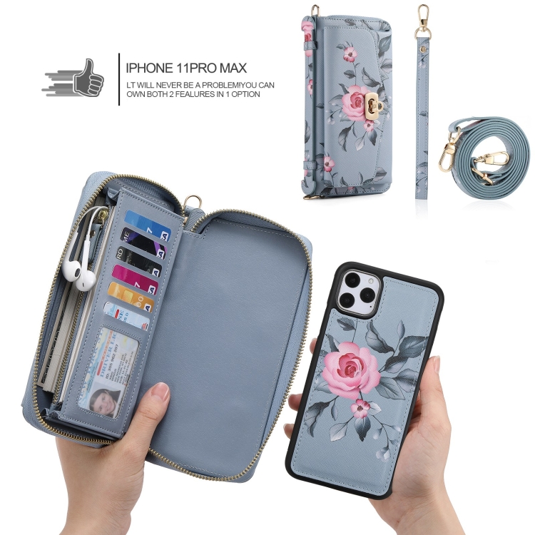 Funda para Teléfono iPhone 11 Pola Flower Cuero Billetera Cremallera Multifuncional (Azul)