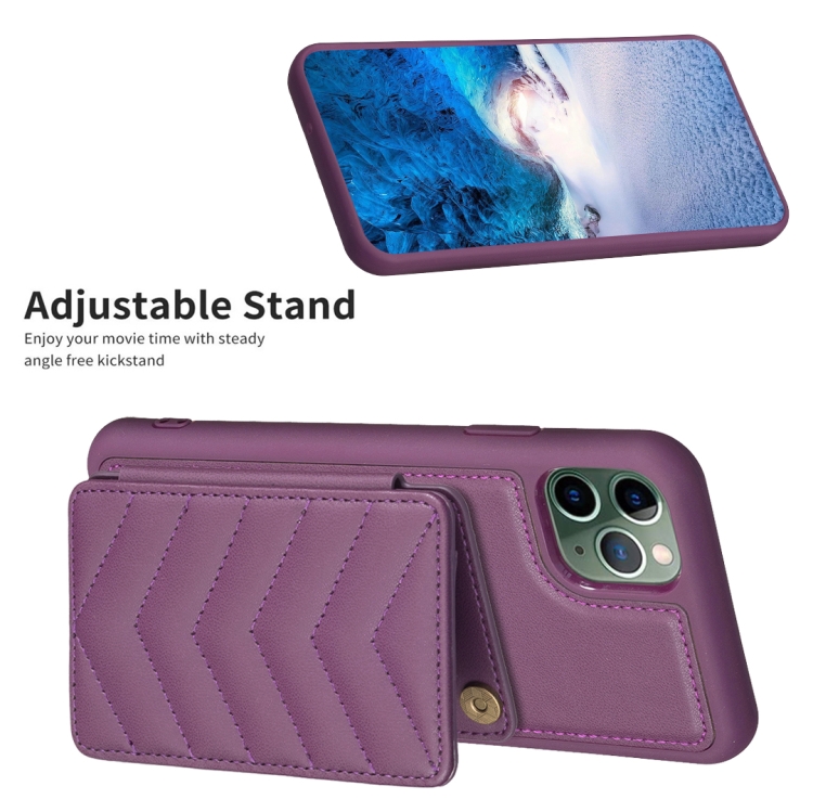 Funda para Teléfono iPhone 11 Pro Bf26 Wave Pattern Card Bag Holder (Morado Oscuro)