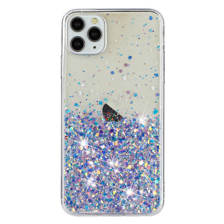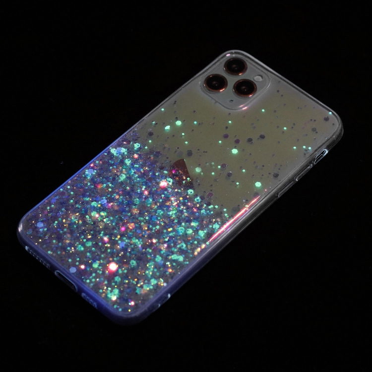 Funda para iPhone 11 Pro TPU con Polvo de Brillo Noctilucente y Marco Transparente (Púrpura)