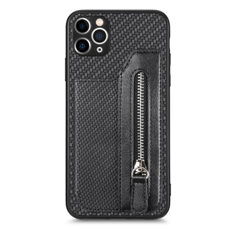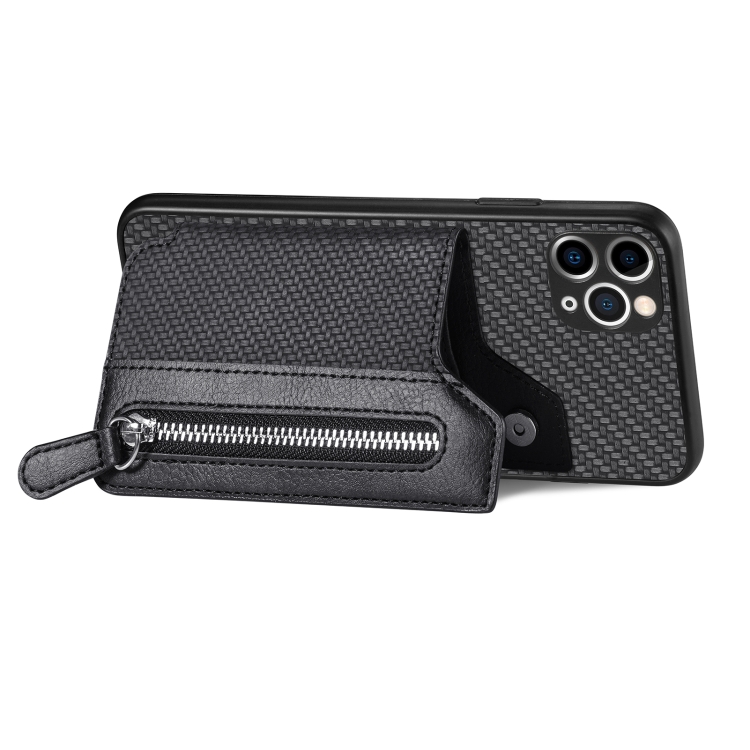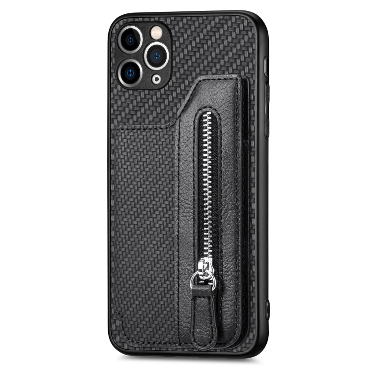 Funda para iPhone 11 Pro Carbon Fiber Horizontal Flip Zipper Wallet (Negro)