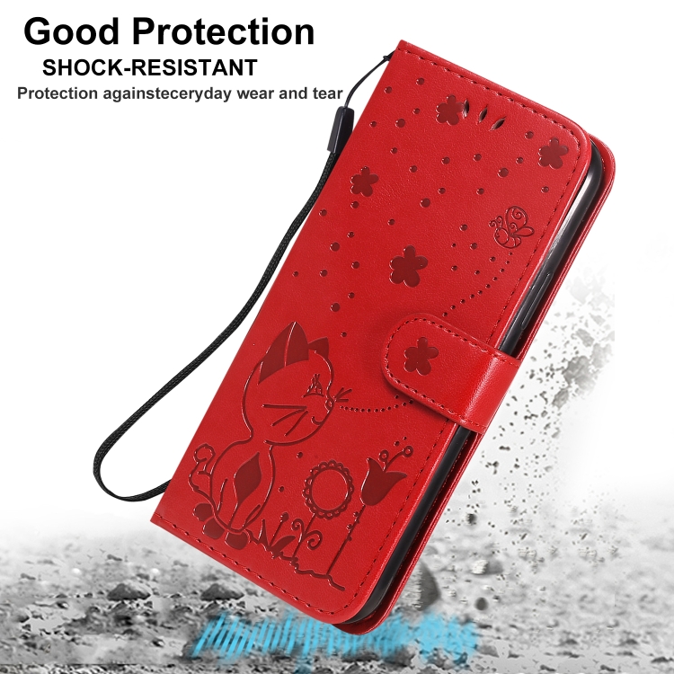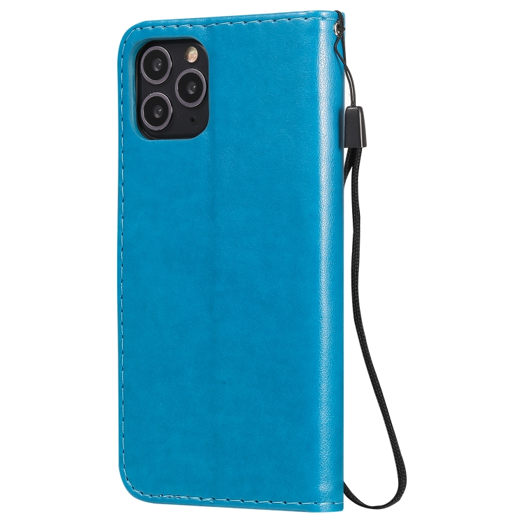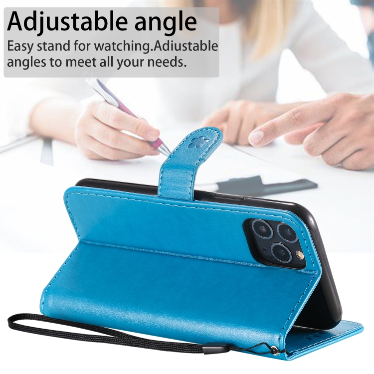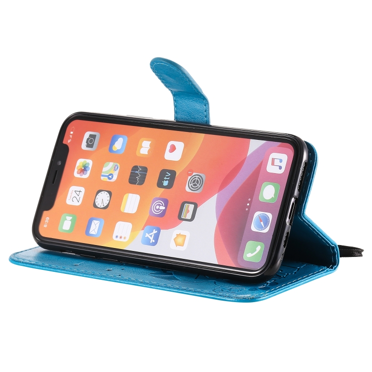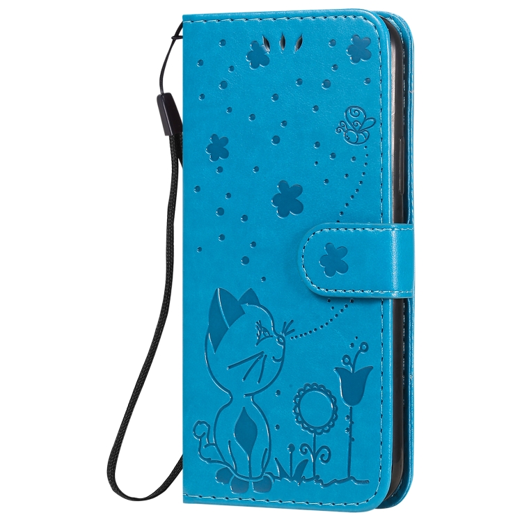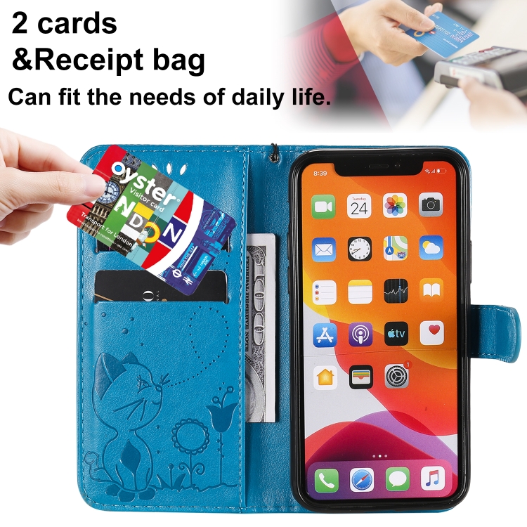 Funda de Cuero iPhone 11 Pro Cat Bee Patrón En Relieve Tapa Horizontal Soporte Ranuras para Tarjetas Billetera (Azul)