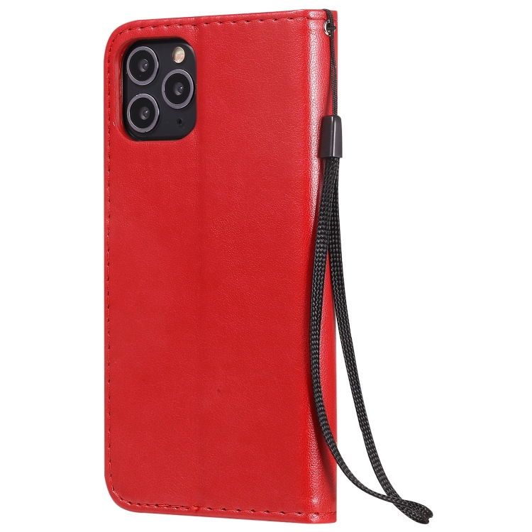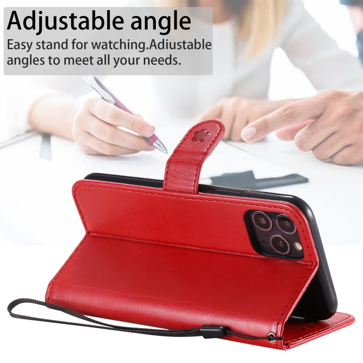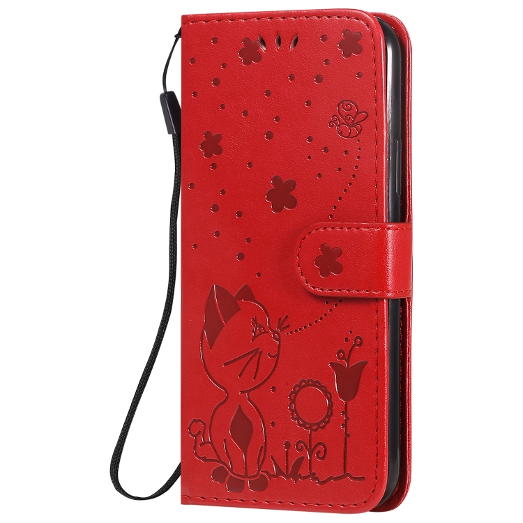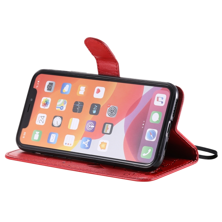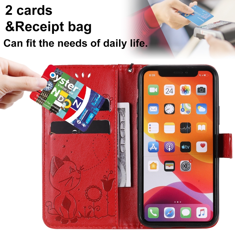 Funda de Cuero iPhone 11 Pro Cat Bee Patrón En Relieve Tapa Horizontal Soporte Ranuras Tarjetas Billetera (Rojo)