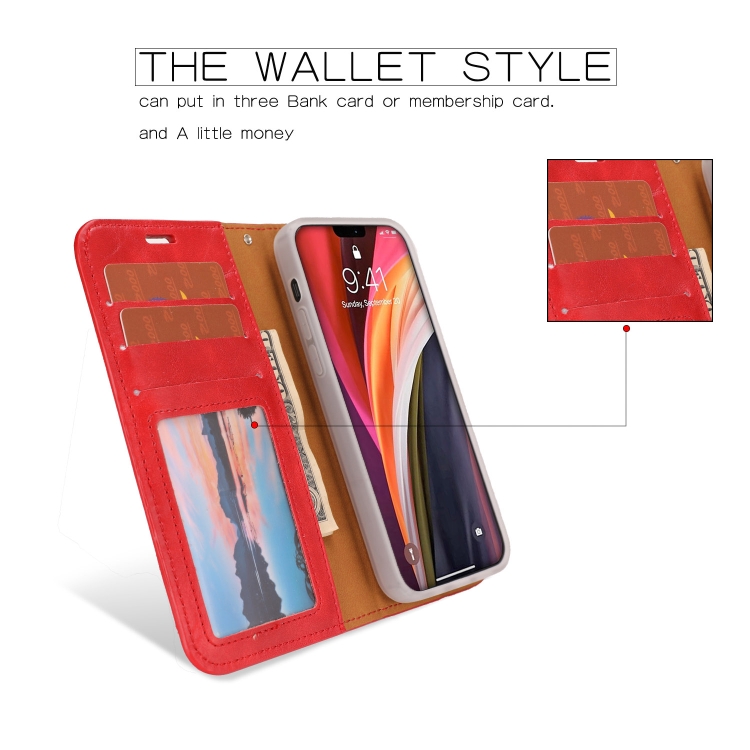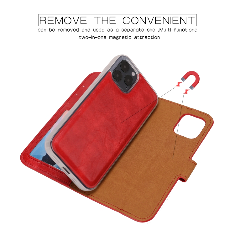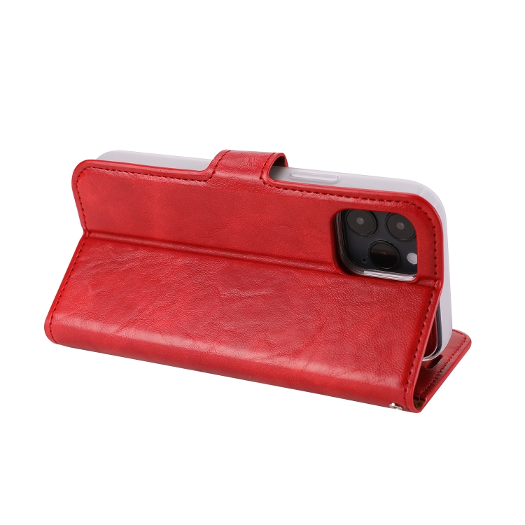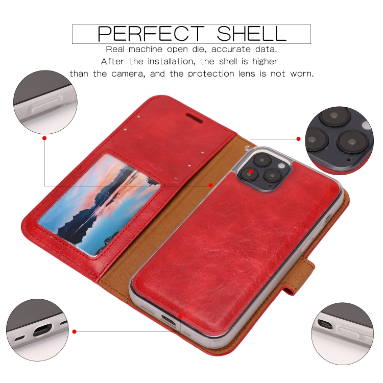 Funda para iPhone 11 Pro Crazy Horse Cubierta Trasera Magnética Cuero con Tapa Horizontal Soporte Ranuras Tarjetas Marco Fotos Billetera (Rojo)