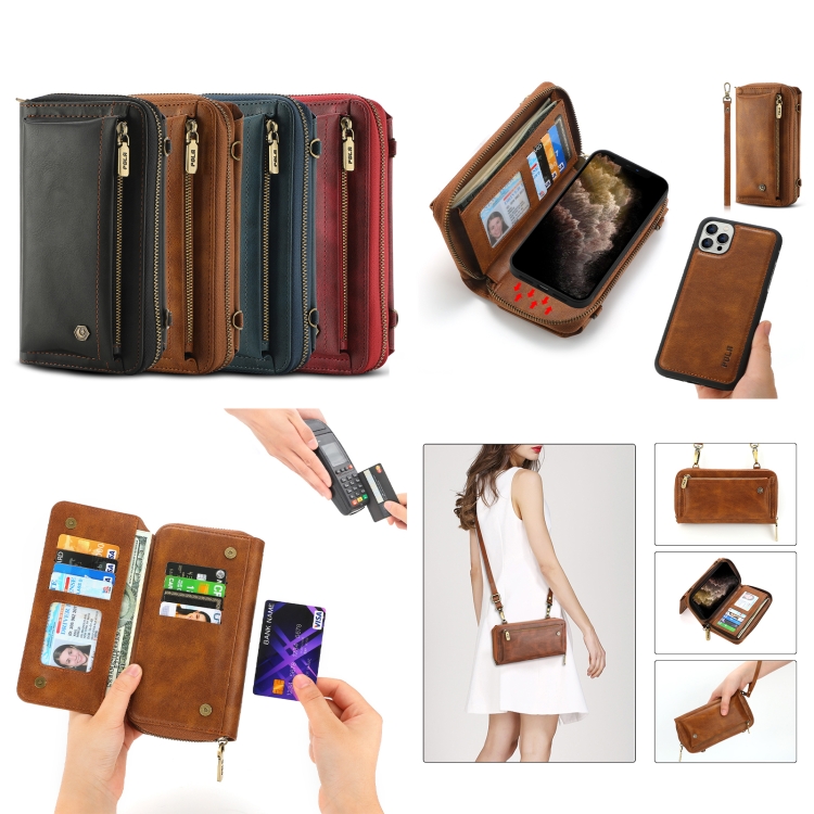 Funda para Teléfono iPhone 11 Pro Crossbody de Cuero con Billetera y Cremallera Multifuncional (Marrón)