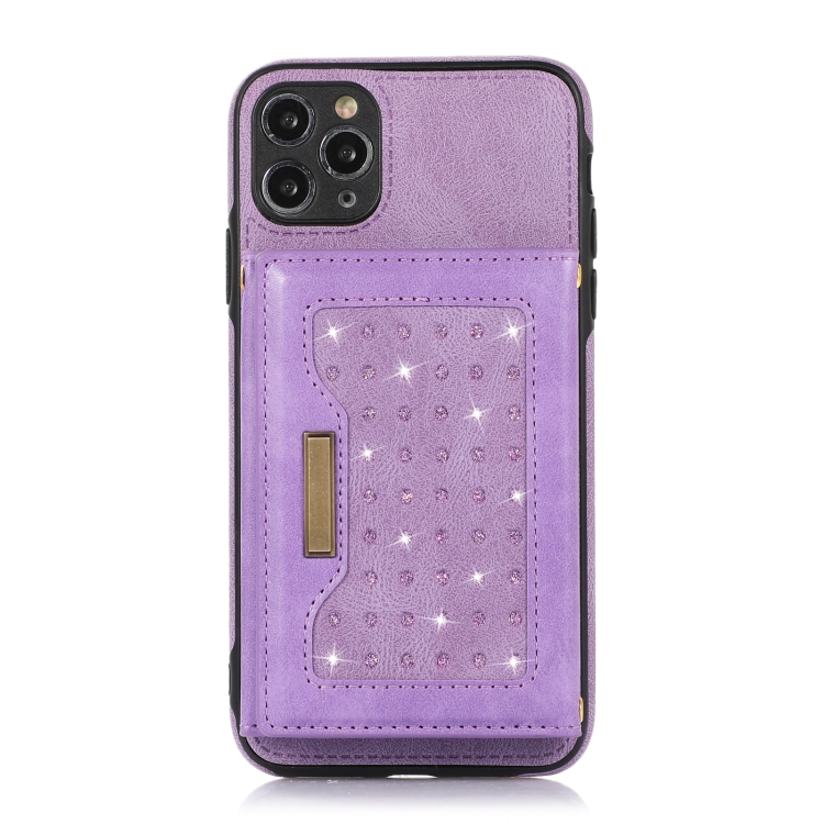 Estuche de Teléfono iPhone 11 Pro Cuero Rfid Tres Pliegues con Cordón (Púrpura)