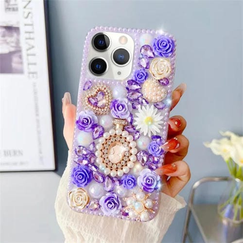 Estuche para teléfono iPhone 11 Pro con Rosa con Incrustaciones de Diamantes (Púrpura)